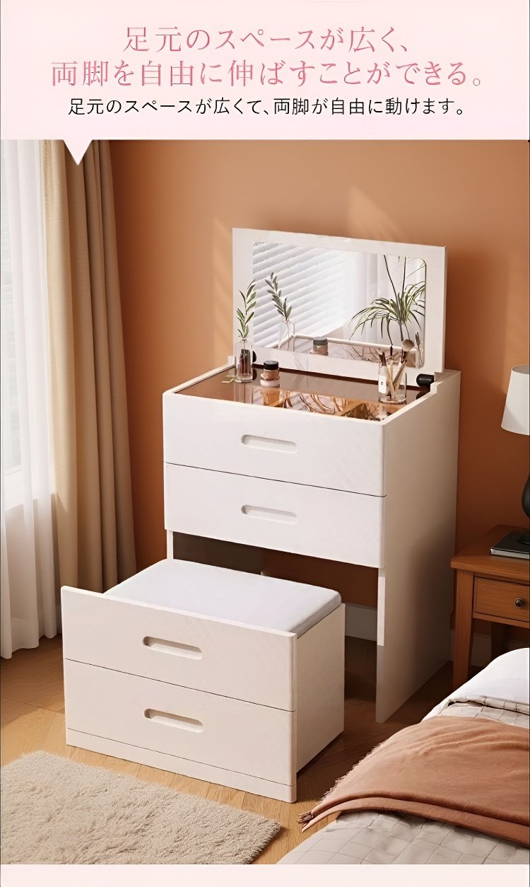 カラー:48CMホワイト隠しドレッサースツール+フリップミラー+ライトなし